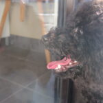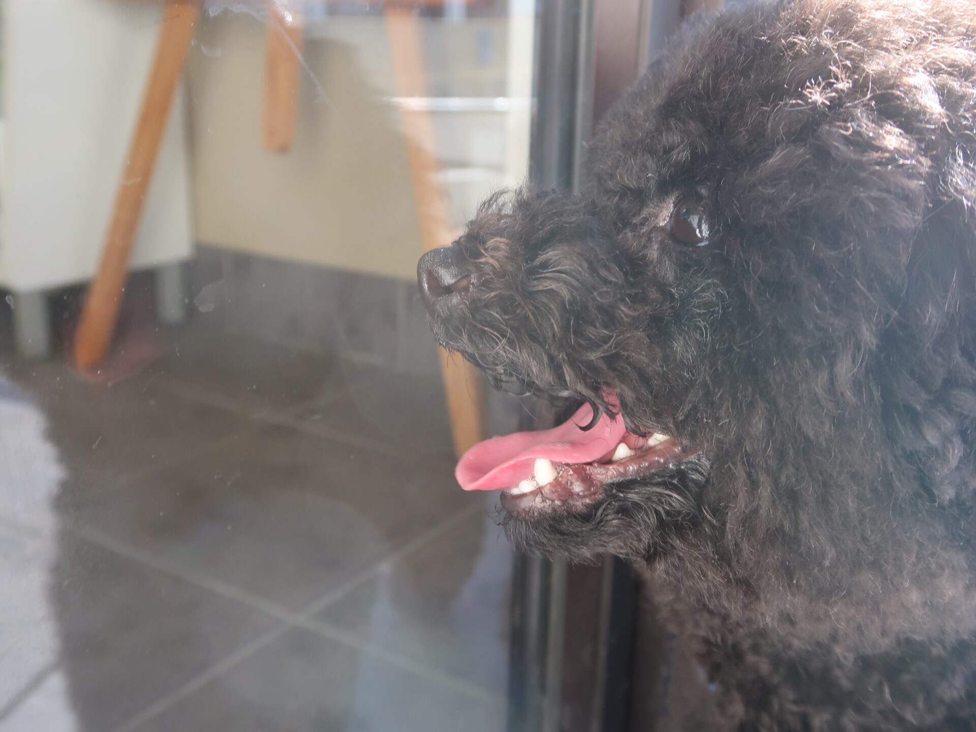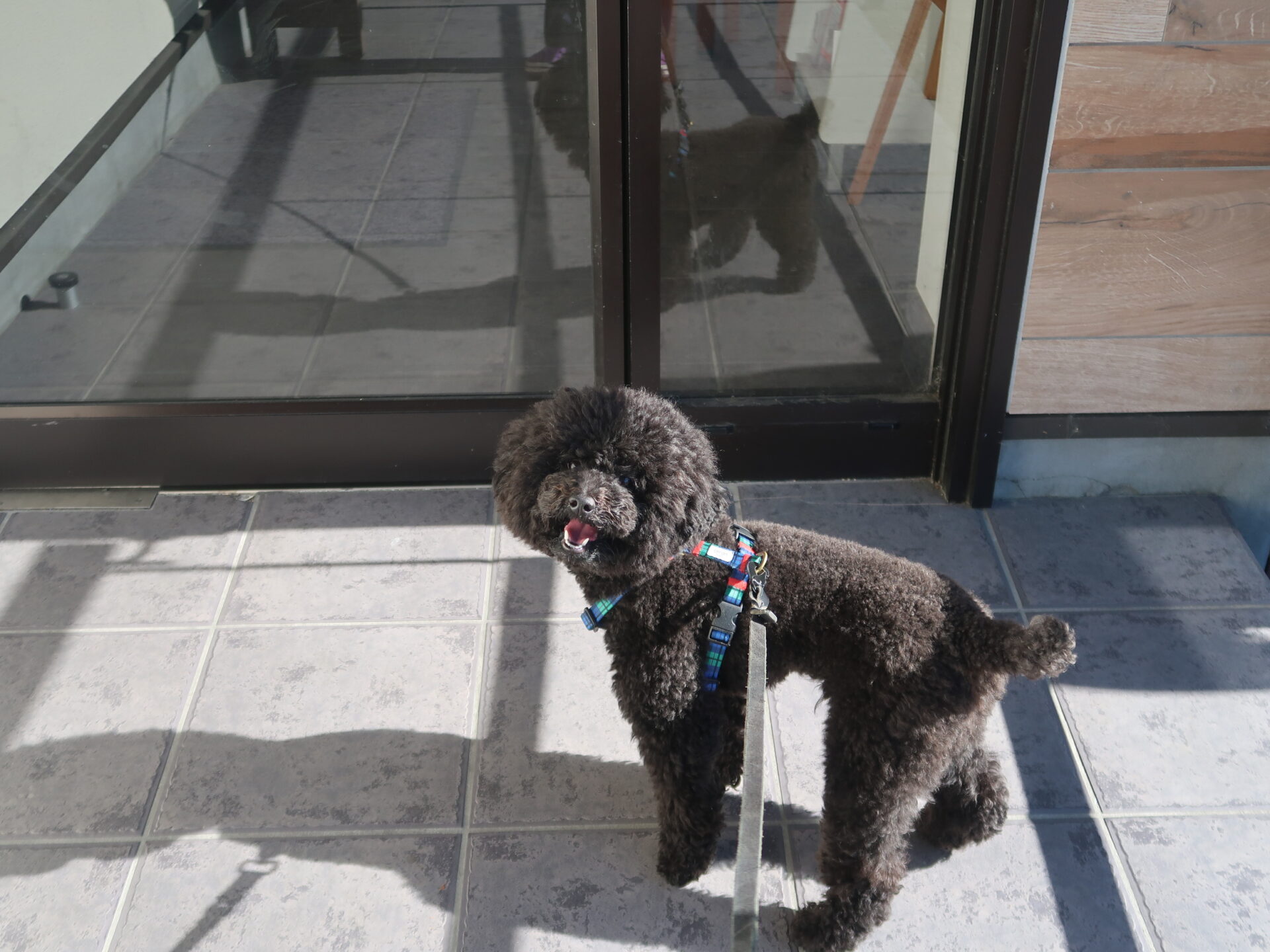 扉の前で扉が開くまでしっかりと待てができるLuLuちゃん