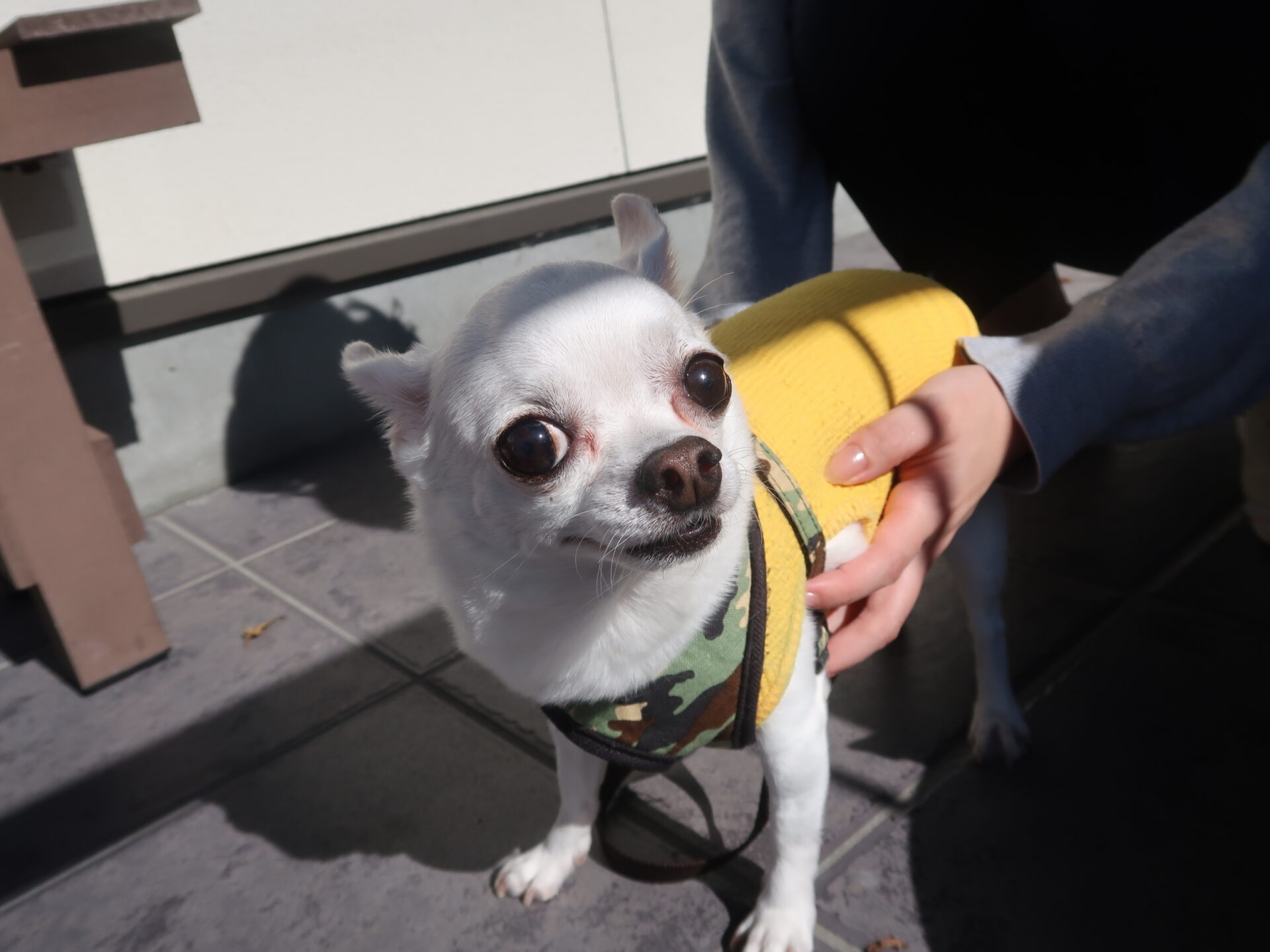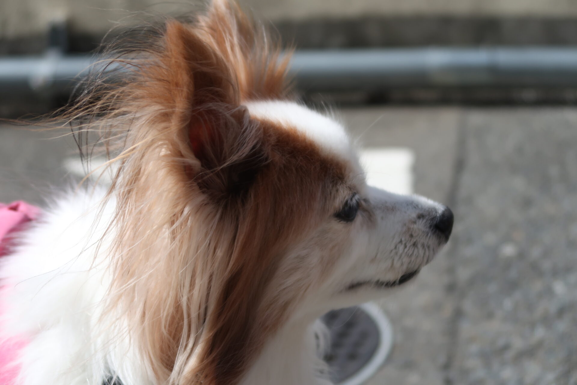 お散歩?少し緊張なお顔の