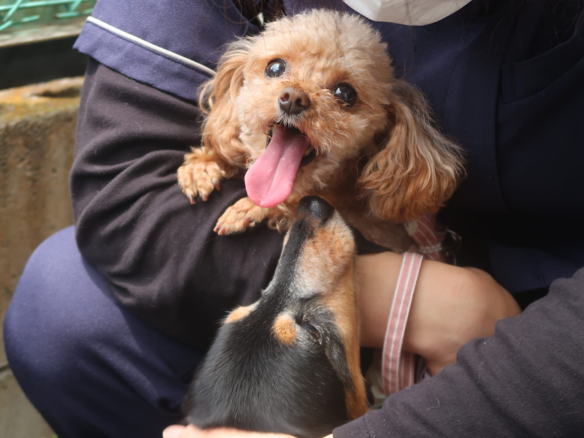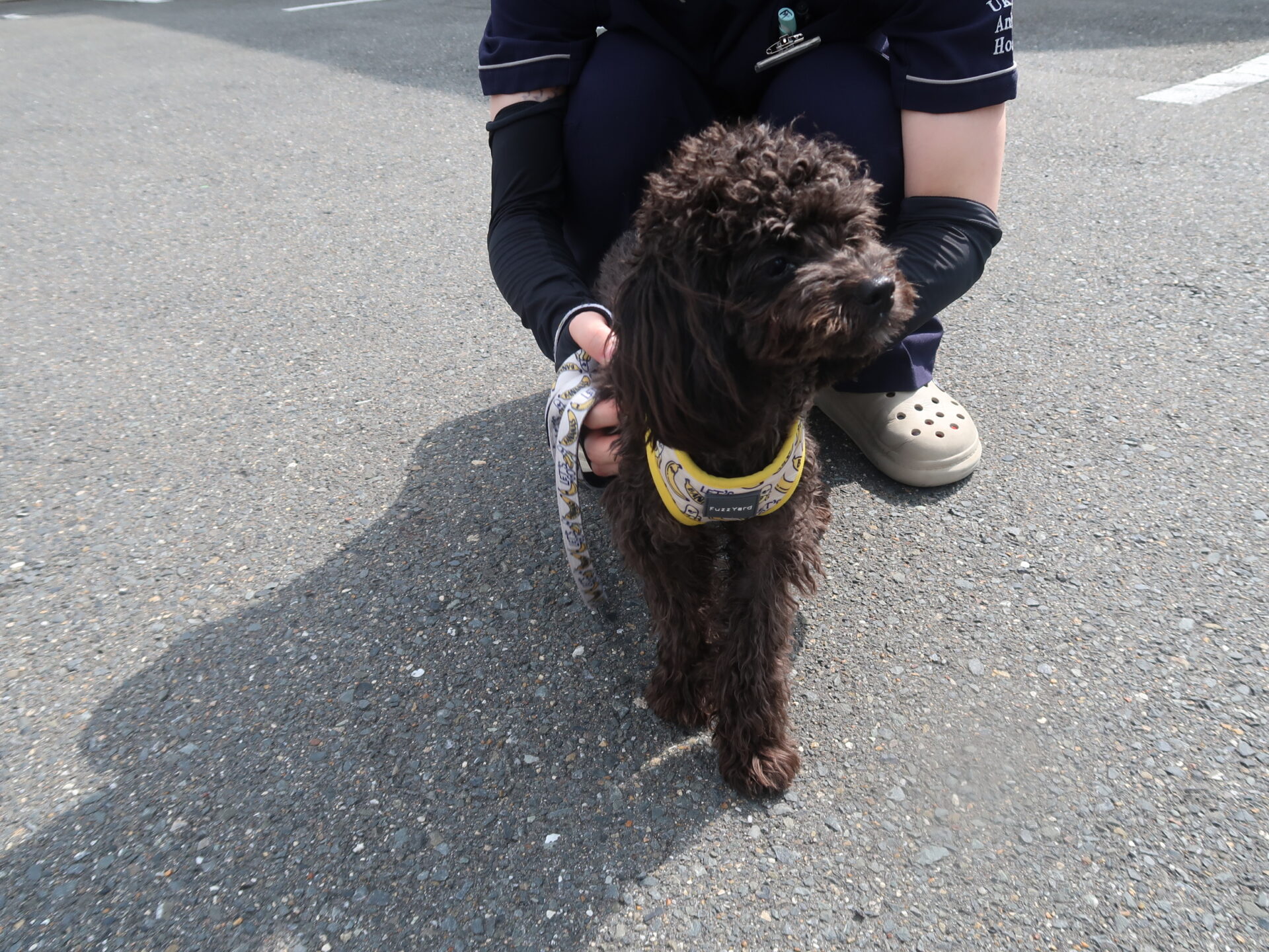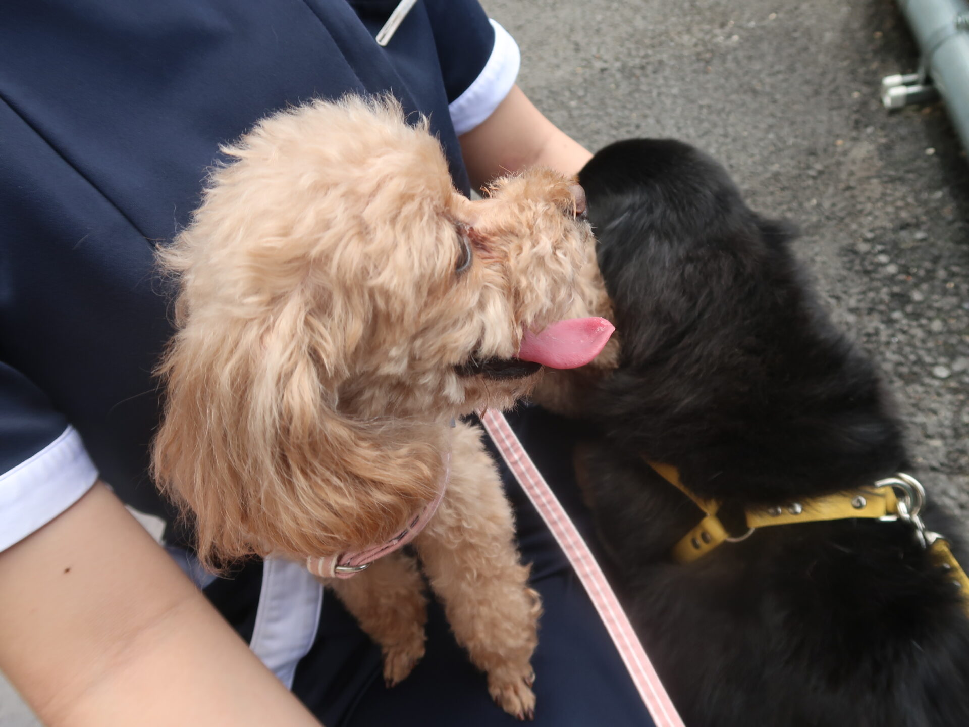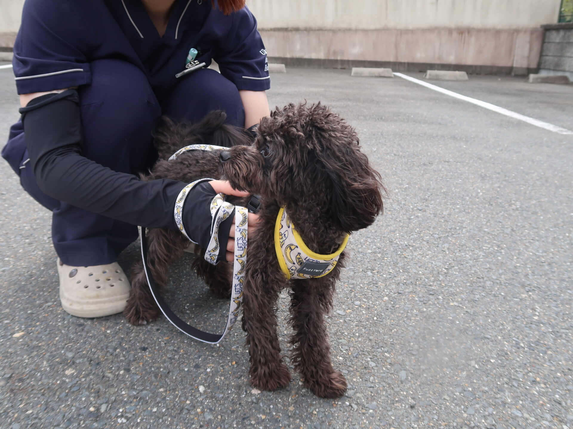 今はどうやら一緒にお散歩してくれているスタッフとお話し中かな??