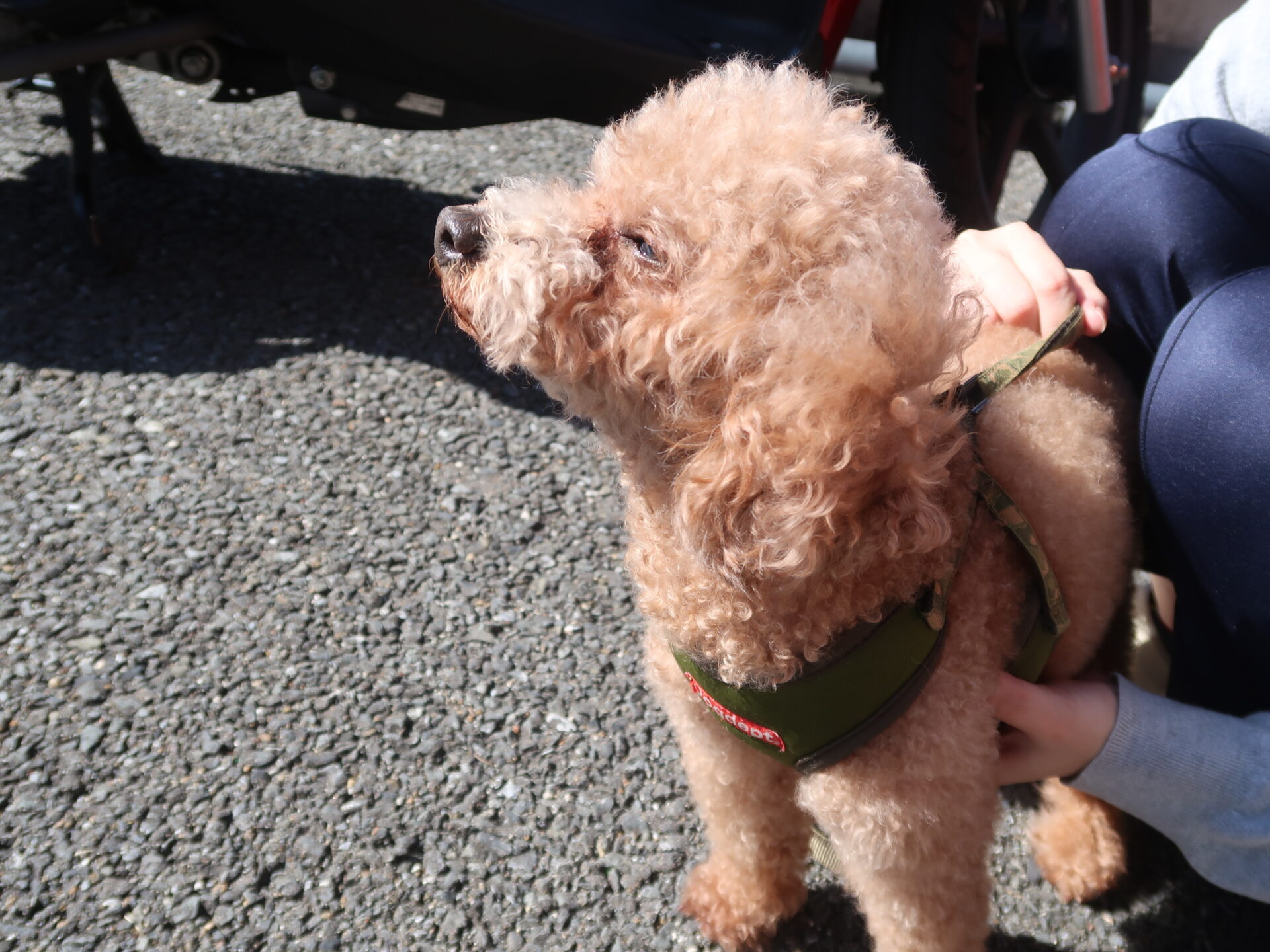 お散歩中何かふと物思いにふけっている様子のどりちゃん