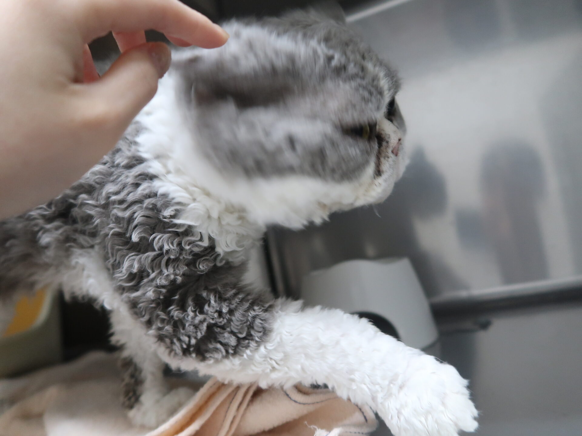 デレデレと撫でているとスッと距離を取られたスタッフ。