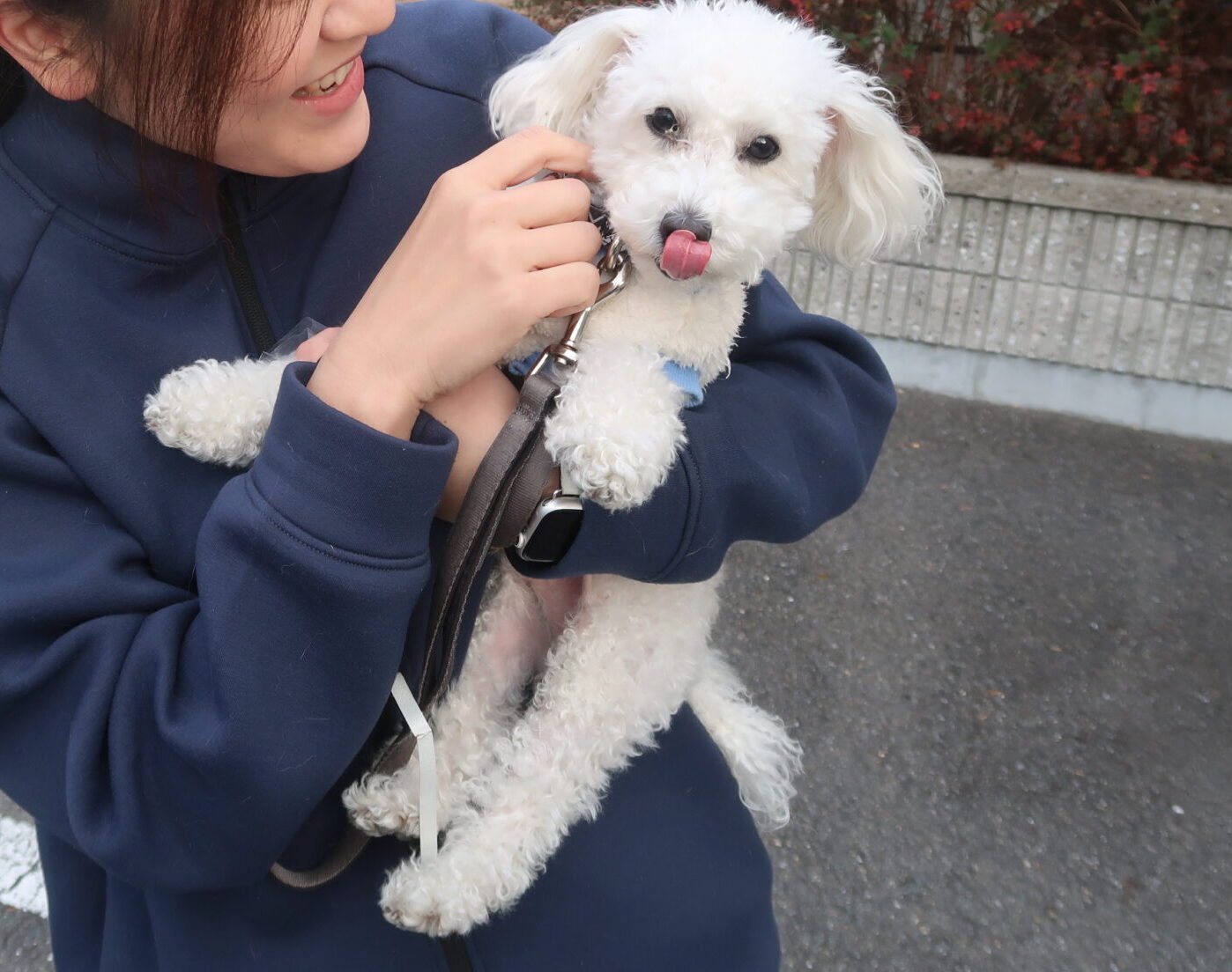 ご機嫌でお散歩してくれているのは、トイプーのぺるちゃんです。