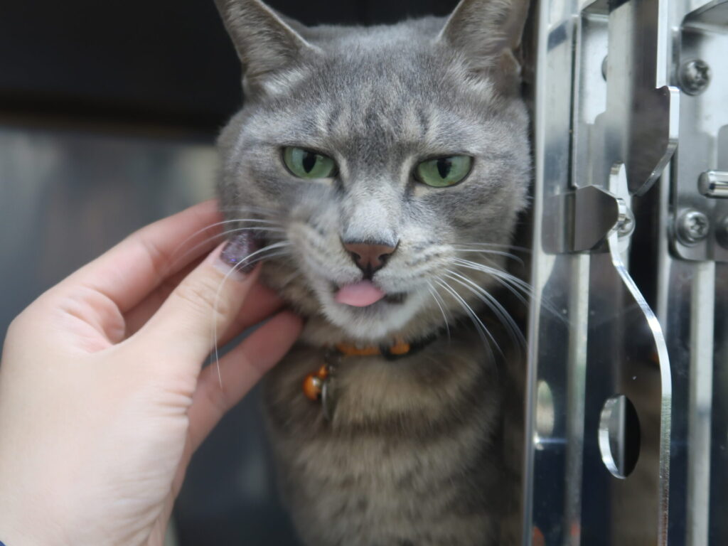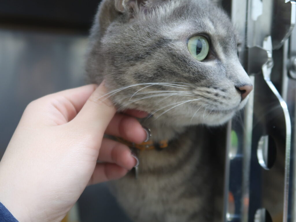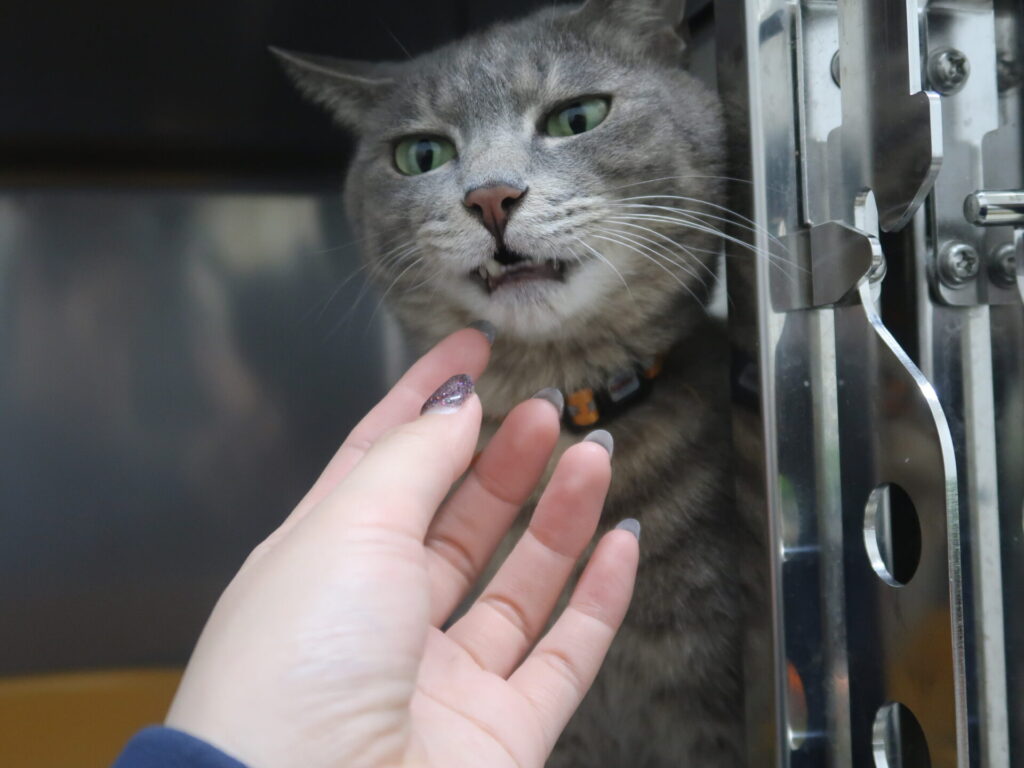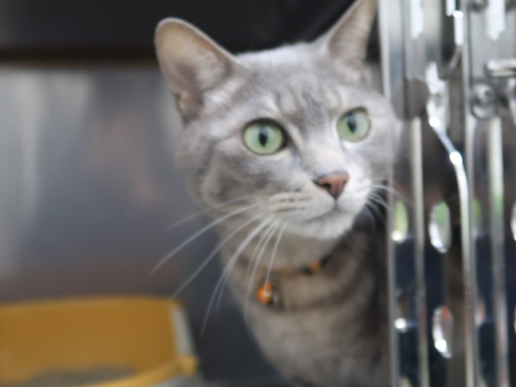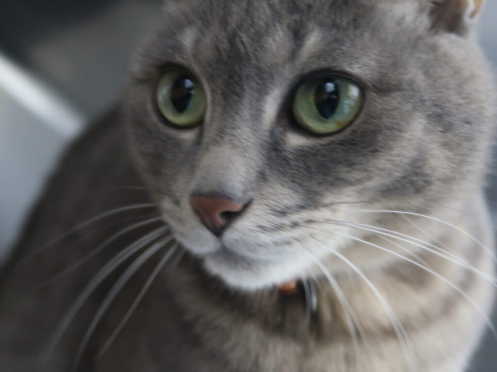 まずはグレーの毛並みにエメラルドグリーンの瞳が美しい