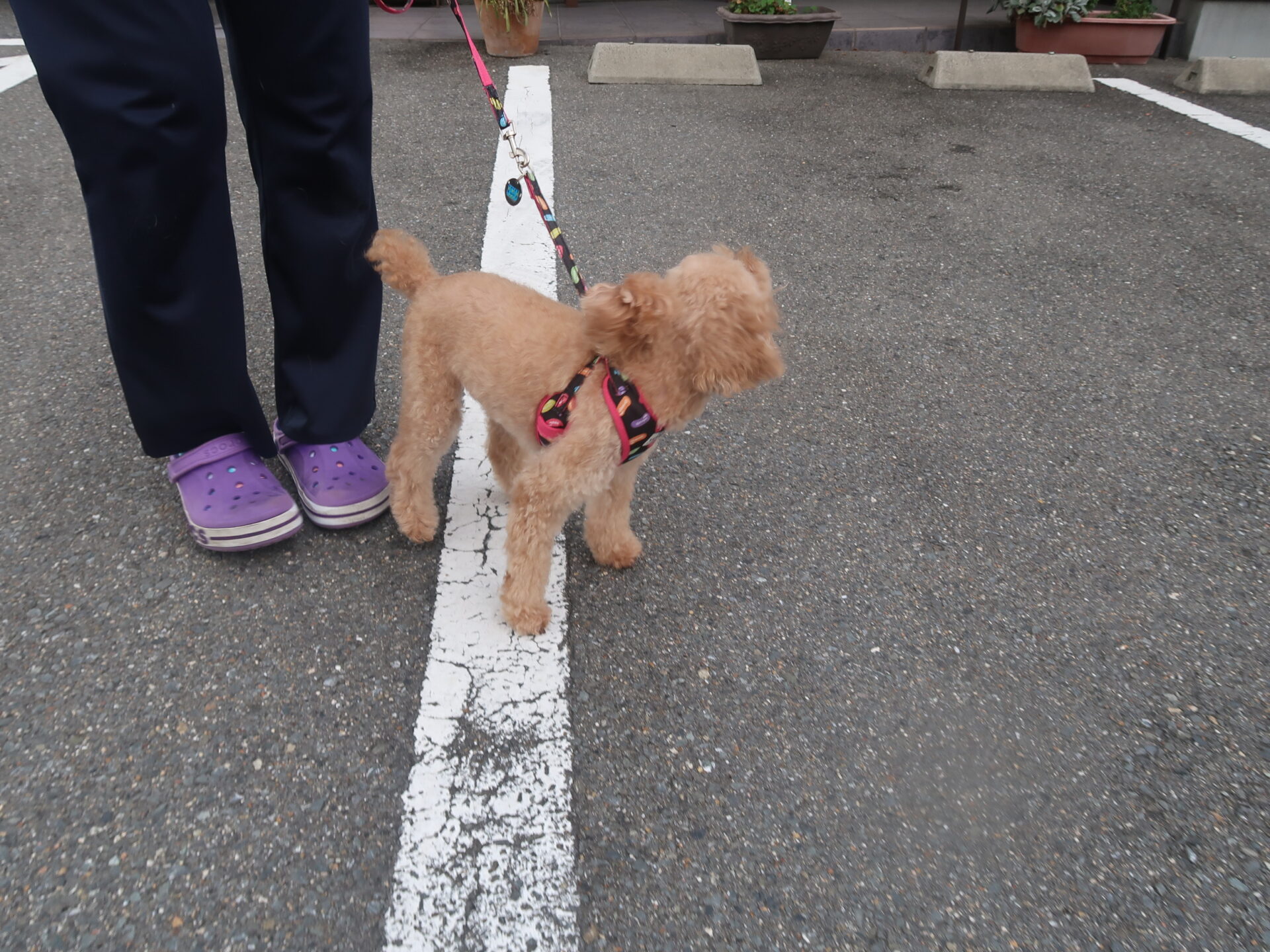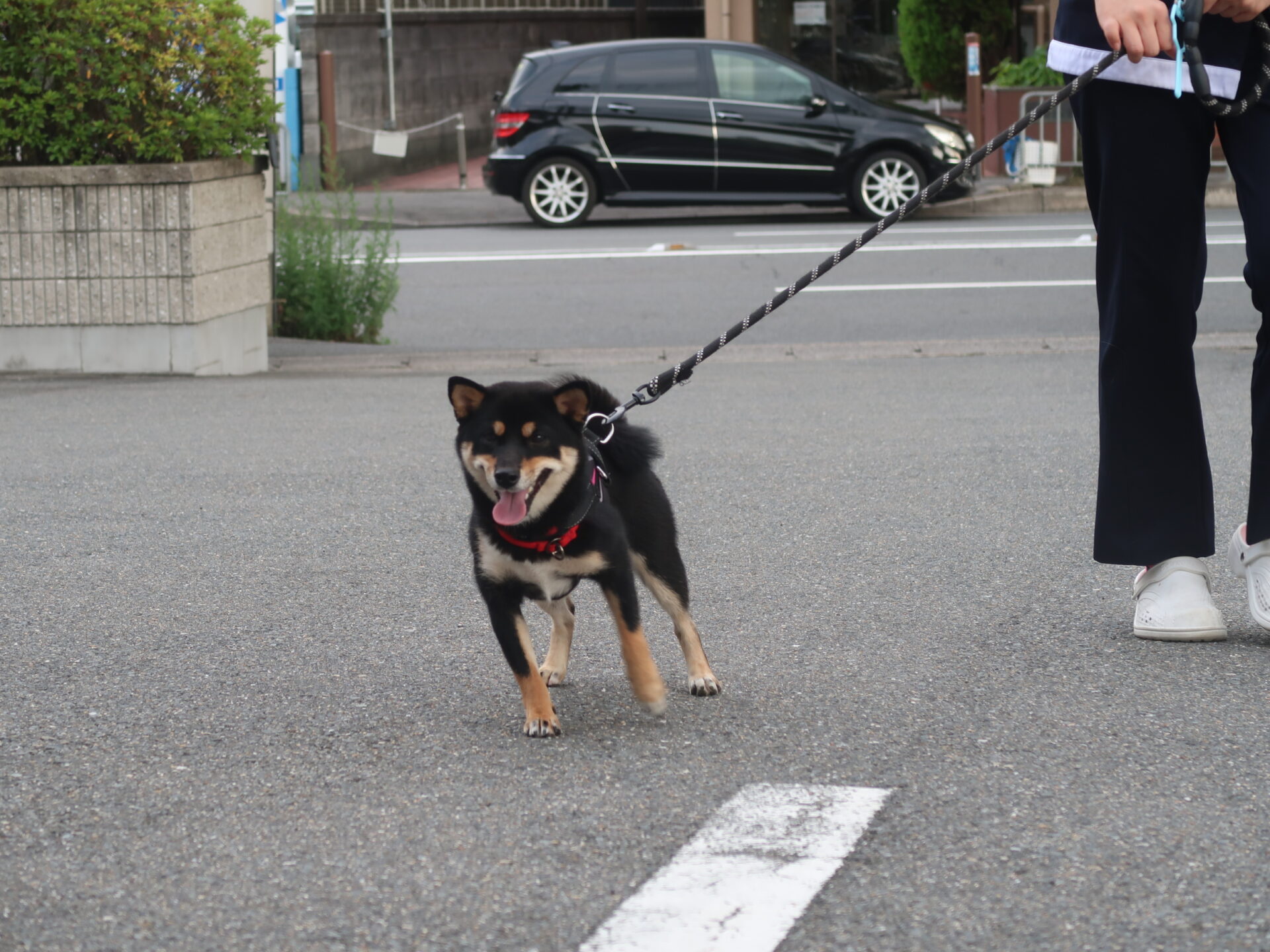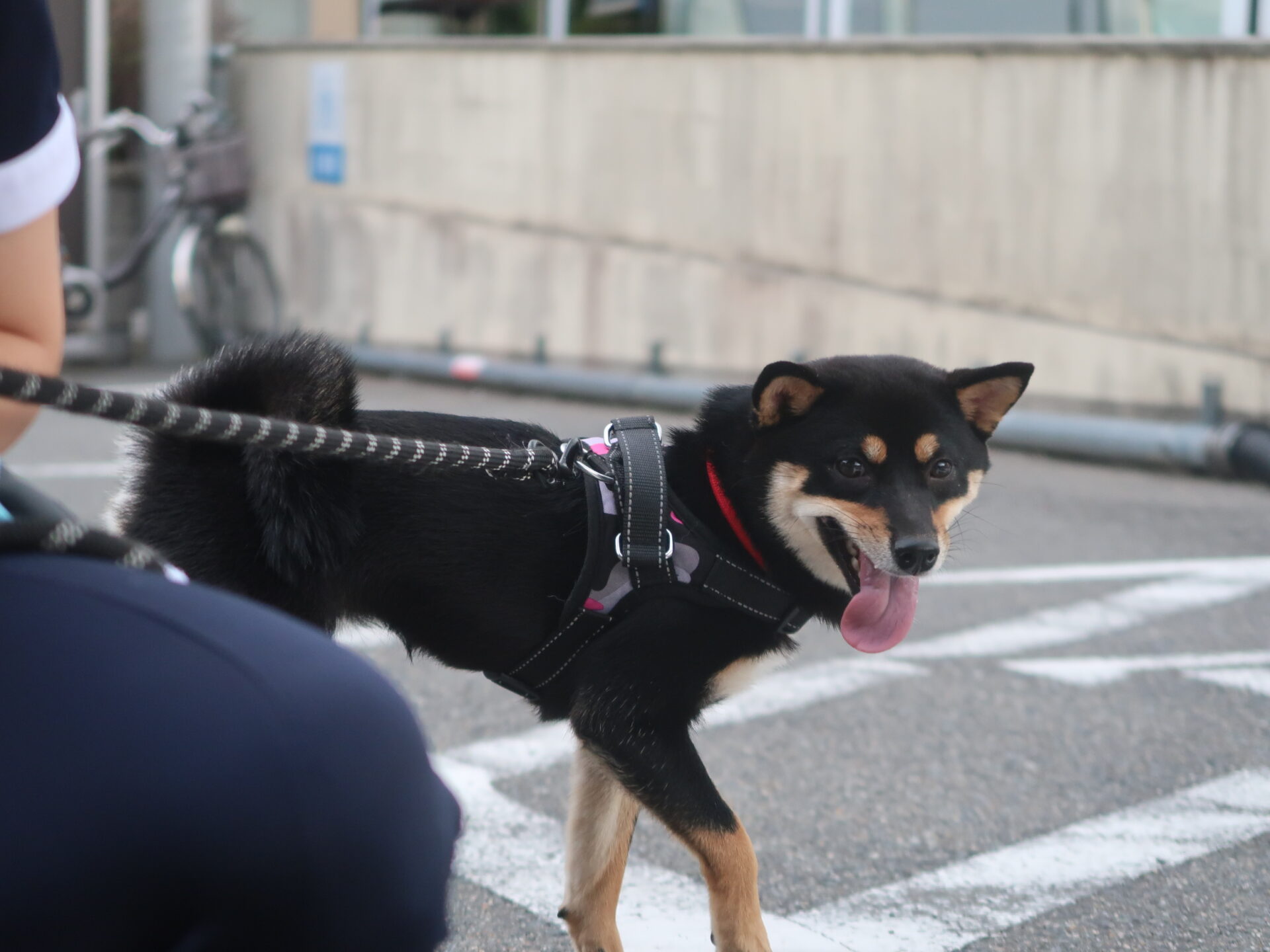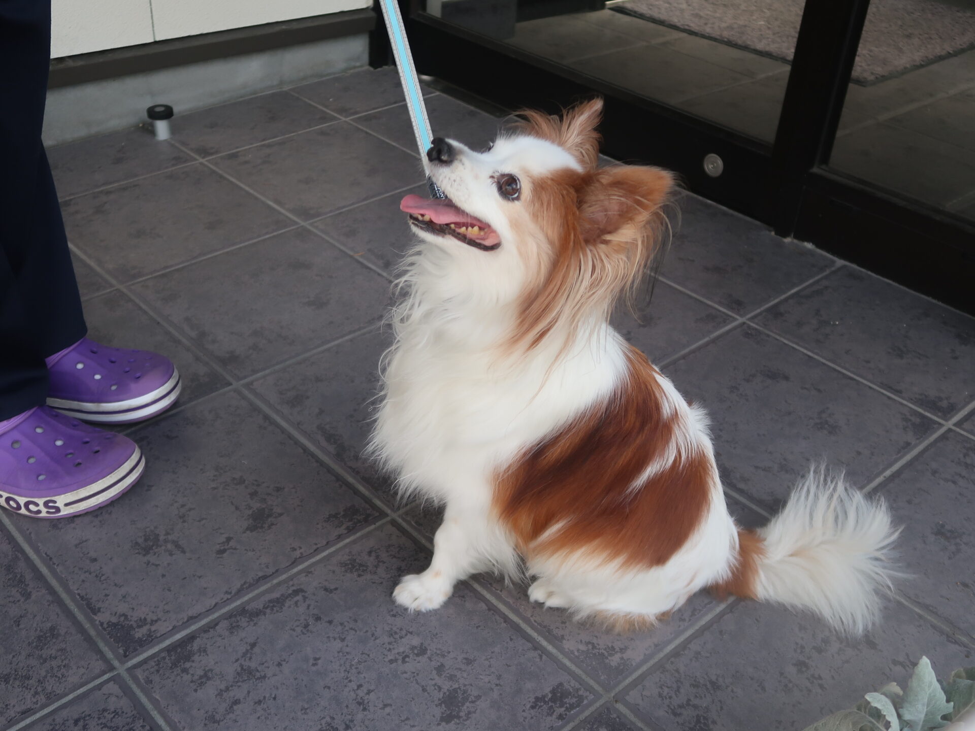 お散歩のためなら笑顔で待てだってできちゃいます!