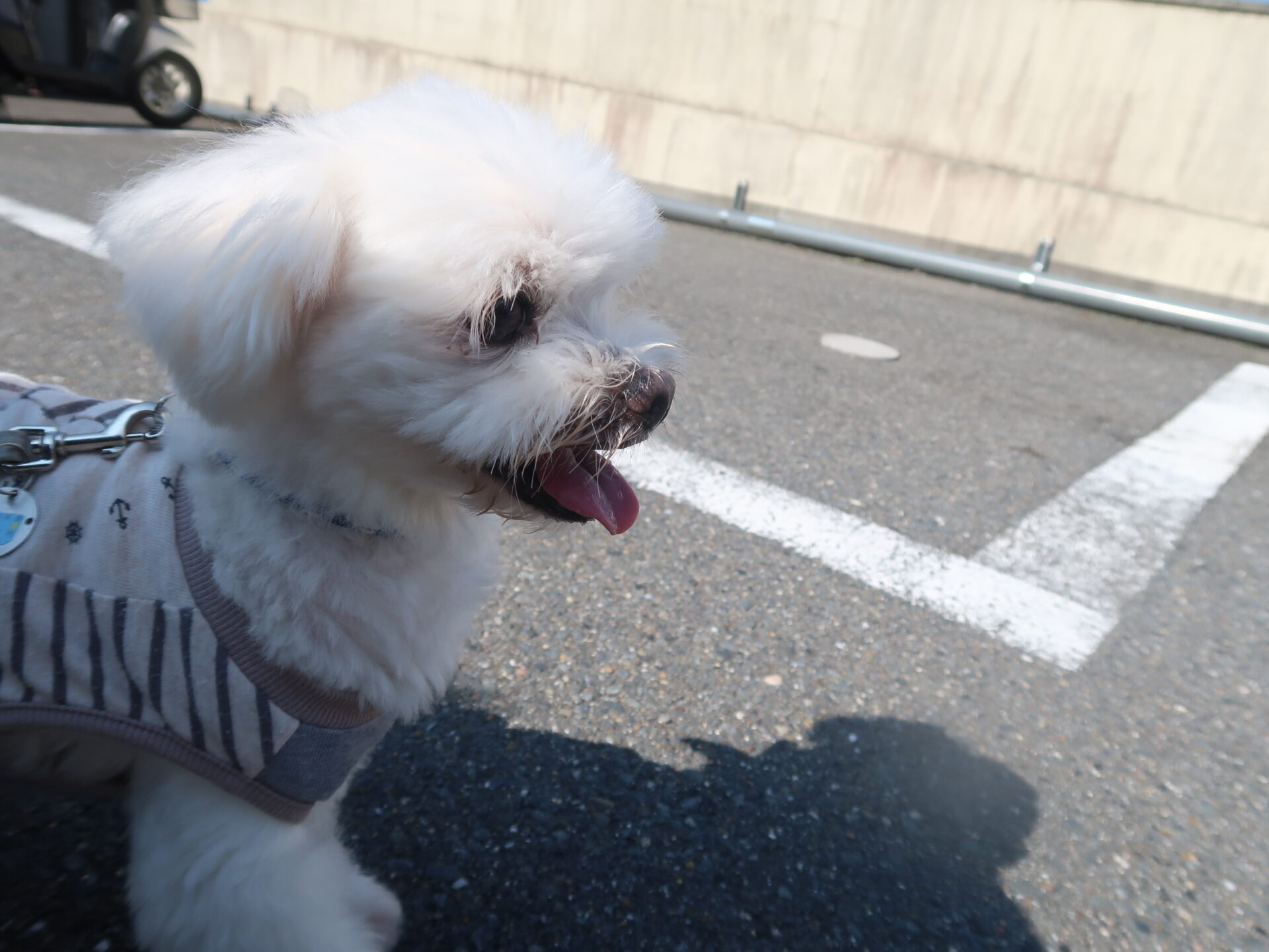 お散歩行くよ〜の声で起きたのかお口が少し開いてますよ(^-^)