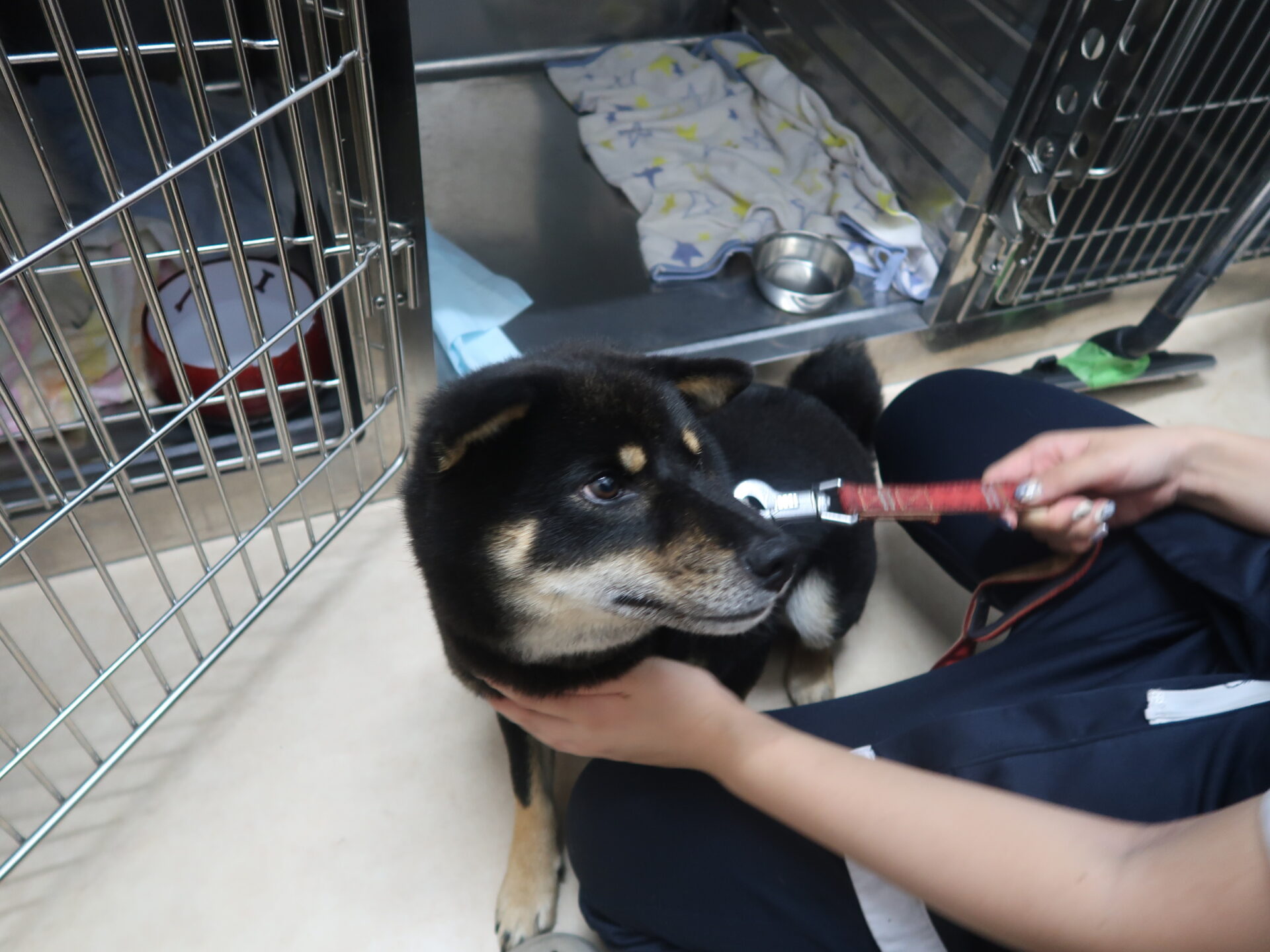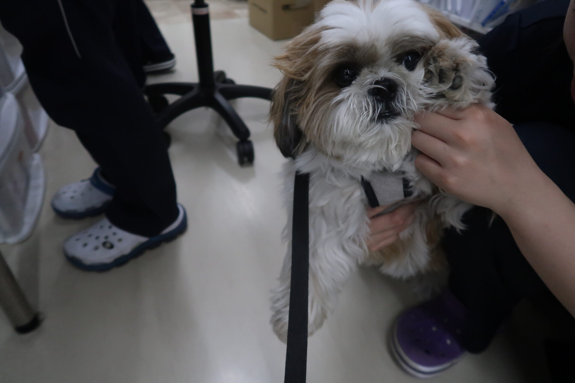 院内に戻ってきたら、お利口なうにちゃんは受付さんにされるがまま。