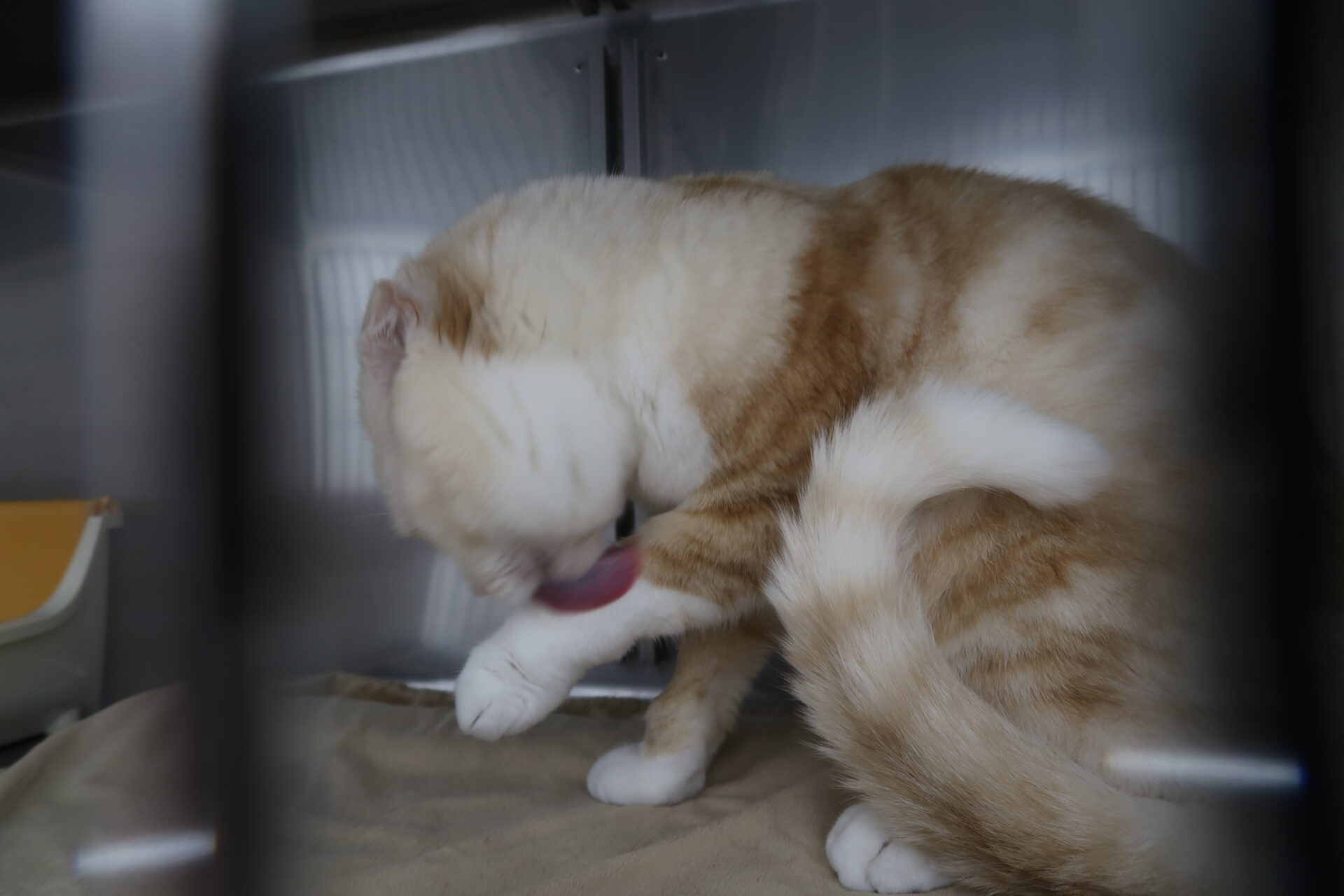 じゃあせめて毛繕い中のかわいいソラちゃんを…と再び撮影に奮闘するスタッフ。